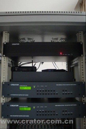 AV作為整個(gè)控制系統(tǒng)的核心;使用CREATOR快捷的VGA0808、AV0808矩陣切換器進(jìn)行音/視頻信號(hào)的相互切換;采用CREATOR配備的周邊設(shè)備對(duì)會(huì)議廳的電力環(huán)境進(jìn)行智能操控。