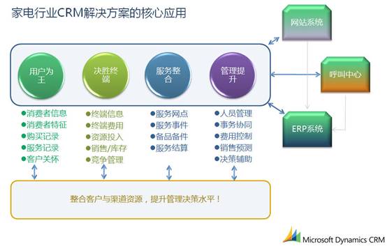 Techsun家電行業(yè)CRM解決方案基于Microsoft Dynamics CRM這一優(yōu)秀平臺(tái),實(shí)現(xiàn)了對(duì)客戶(hù)、渠道資源的統(tǒng)一客戶(hù),對(duì)銷(xiāo)售、市場(chǎng)、服務(wù)職能的全面支持,滿(mǎn)足了復(fù)合渠道整合的管理需求。Microsoft Dynamics CRM基于SOA架構(gòu),具有易集成的特點(diǎn),滿(mǎn)足了家電行業(yè)多種復(fù)雜異構(gòu)系統(tǒng)的集成需求。