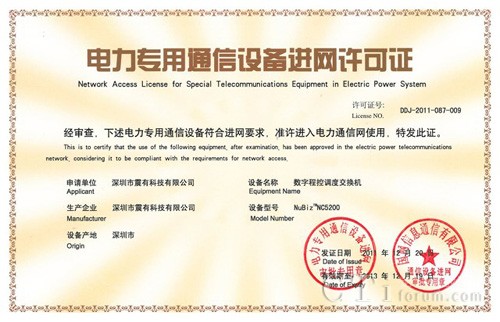 CTI論壇(ctiforum)12月22日消息(記者 張潔):日前從深圳市震有科技有限公司獲悉,震有科技數(shù)字程控調(diào)度交換機榮獲電力專用通信設(shè)備進網(wǎng)許可證。