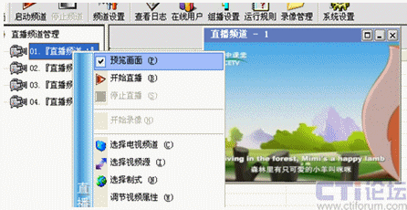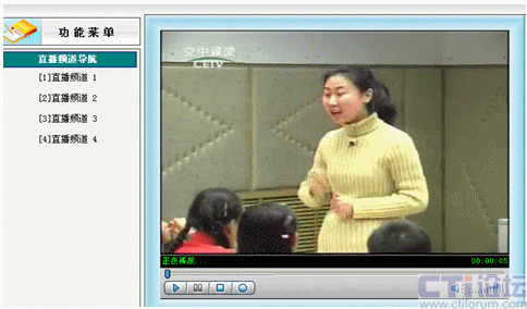 先在直播系統里啟動設置好的01號頻道,其他教師就可以在各自辦公室通過計算機網絡觀看遠教節(jié)目,不需淘神費力地到專門的接收室了。如下圖: