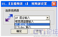 其中支持三種視頻源:從電視調諧器輸入是對應電視光纖信號輸入,av混合輸入則對應從電視卡的av端子輸入,s-video輸入對應從S-video端子輸入。由于遠教接收機只能輸出av信號,我這里是連接電視卡的av端子接收遠教電視節(jié)目的。因此這里選擇“AV混合輸入”,確定即可。