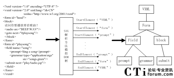 調(diào)用標(biāo)準(zhǔn)的XML類生成VoiceXML樹;