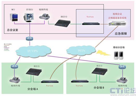 VORTEX 2241:3臺 放置于北京主會場。該設(shè)備可實現(xiàn)視頻會議的語音同備份語音無縫結(jié)合,確保兩路聲音切換時,與會者不會察覺;顯著減少發(fā)至其它站點的聲音中的環(huán)境噪聲,從而消除麥克風(fēng)和線路輸入和電話接聽音頻的環(huán)境噪聲,提高現(xiàn)有會議裝置的整體音質(zhì)。