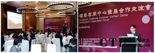 CTI論壇(ctiforum)5月12日消息(記者 潘婷婷):為促進穗港兩地企業(yè)交流與合作,共同提升兩地客戶服務中心的服務品質(zhì),2010年4月14日(星期三)11:00-13:30,由廣州市對外貿(mào)易經(jīng)濟合作局、廣州市科技和信息化主辦,廣州軟件合作中心承辦的“穗港客服中心發(fā)展合作交流會”在香港凱悅酒店順利舉行。