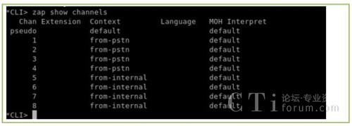 上面的輸出表示A1200P的通道都已識別,驅(qū)動安裝成功(本文用的是8個FXS口,上面的channel 01到channel 08是FXs口,后面的FXO表示它們使用的是FXO的信令,并不是表示它們是FXO口,這一點大家應該注意)