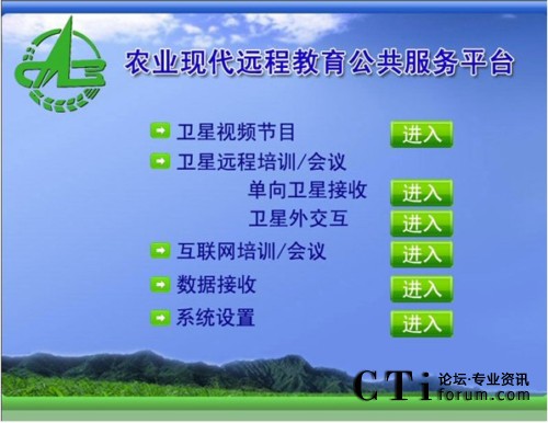 農(nóng)業(yè)現(xiàn)代遠(yuǎn)程教育平臺將先進(jìn)的多媒體寬帶DVB衛(wèi)星通信系統(tǒng)和全面的網(wǎng)絡(luò)遠(yuǎn)程教育培訓(xùn)/會議系統(tǒng),天(衛(wèi)星網(wǎng))地(互聯(lián)網(wǎng))合一,集成廣播、電視和網(wǎng)絡(luò)的功能,形成了廣覆蓋、大容量、多功能、低成本、快捷高效的遠(yuǎn)程教育培訓(xùn)網(wǎng)絡(luò)、技術(shù)培訓(xùn)資源傳輸通道和網(wǎng)絡(luò)視頻會議系統(tǒng),是面向“三農(nóng)”開展多形式多層次現(xiàn)代遠(yuǎn)程教育培訓(xùn)、科學(xué)普及、技術(shù)推廣和信息傳播的公共服務(wù)平臺。同時,該平臺也是首個將視頻會議/培訓(xùn)接入衛(wèi)星網(wǎng)絡(luò)的系統(tǒng),將遠(yuǎn)程視頻會議帶入了新的通訊領(lǐng)域,也為遠(yuǎn)程視頻會議的運用開創(chuàng)了一片新的天地。