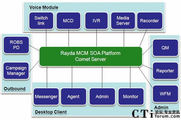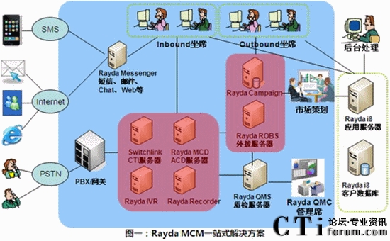 Rayda MCM多渠道呼叫管理平臺,是呼叫中心基礎呼叫業(yè)務的信息化支撐平臺系統(tǒng)。Rayda MCM以先進的呼叫信息交互為核心,涵蓋呼叫中心系統(tǒng)所必須的ACD、IVR、PD、錄音、質檢等基本功能,更整合了統(tǒng)一通信、電話營銷等多項企業(yè)迫切需要的功能。MCM支持支持從板卡、傳統(tǒng)PBX到IPPBX網(wǎng)絡等各種接入方式的建設,支持從單點到分布式等各種組網(wǎng)方式,適應從中小企業(yè)到外包型等各種規(guī)模呼叫中心的需求。