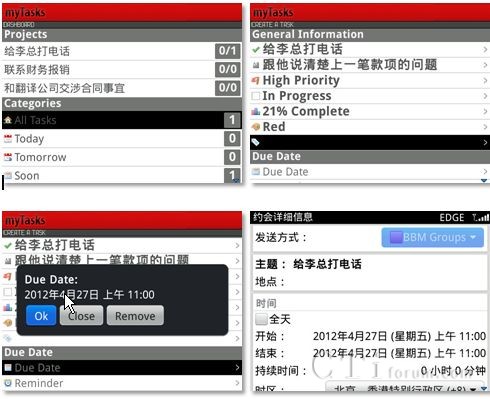 CTI論壇(ctiforum)4月26日消息(記者 歐陽(yáng)): 再過(guò)幾天就是五一勞動(dòng)節(jié)小長(zhǎng)假啦!節(jié)前的最后幾天相信大家都在快馬加鞭想把手頭上的工作盡快處理完畢,好能過(guò)個(gè)安心的節(jié)日假期。我們也特別為大家搜集了黑莓智能手機(jī)上能夠在效率方面助大家一臂之力的幾款應(yīng)用,希望它們可以在工作生活中為諸位帶來(lái)切實(shí)有效的幫助!