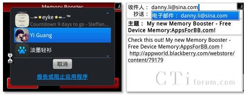 相信很多用戶都發(fā)現(xiàn),手機(jī)的流暢度會(huì)隨著應(yīng)用的增多和使用時(shí)間的增長(zhǎng),而變得越來(lái)越“坑爹”。同電腦一樣,智能手機(jī)在運(yùn)行過(guò)程中也會(huì)產(chǎn)生大量的垃圾文件,而這些文件一旦過(guò)多,必定對(duì)流暢性造成一定影響。這款名為Memory Booster的應(yīng)用除了能夠快速清理黑莓智能手機(jī)中的這些垃圾文件外,還能夠刪除不必要的緩存內(nèi)容,為手機(jī)騰出更多的存儲(chǔ)空間。用戶只需點(diǎn)擊Boost Now,就可一鍵解決所有問(wèn)題,讓你的手機(jī)重?zé)ㄇ啻骸W鳛橐豢頑BM整合應(yīng)用,我們還可以通過(guò)BBM和郵件把它推薦給自己的好友,與他們一同分享。