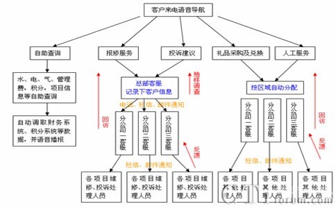 報修投訴、采購、人工咨詢及其他服務按統(tǒng)一的內(nèi)部流程處理,由各所屬項目座席受理后以短信或郵件的方式通知到各流程處理人員,處理完畢后反饋給項目座席,項目座席回訪并詢問服務滿意度,總部座席或管理座席隨機抽樣驗證。處理過程超過一定的期限將定時報送給相關(guān)管理人員。這一流程不僅確保收到了客戶的真實感受,更對服務的及時性、規(guī)范性作了監(jiān)督,將大大提升XX物業(yè)對客戶的服務水平。