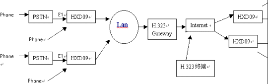 HXD09能滿足各種網(wǎng)絡條件下的應用。組網(wǎng)拓撲圖如下: