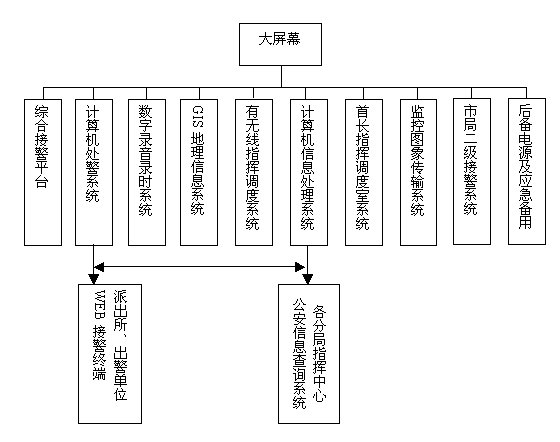 本次建設(shè)需要采用綜合通信技術(shù),將110、119、122系統(tǒng)的計(jì)算機(jī)網(wǎng)絡(luò)和有、無(wú)線通信網(wǎng)有機(jī)互聯(lián),建成集接處警信息獲取、統(tǒng)計(jì)、查詢、發(fā)布于一體,并通過(guò)地理信息和多媒體大屏幕顯示等輔助系統(tǒng)的綜合指揮調(diào)度,實(shí)現(xiàn)110、119、122快速反應(yīng)、信息共享的目的。為此,各系統(tǒng)應(yīng)分別具有下述功能: