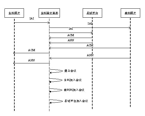 步驟6:彩話平臺(tái)產(chǎn)生會(huì)議,將主叫、被叫和彩話音樂(lè)加入到會(huì)議中。