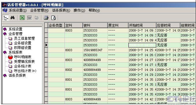 系統(tǒng)提供通話數(shù)據(jù)信息及統(tǒng)計(jì),包括: 主被叫號(hào)碼 通話時(shí)長 呼出時(shí)長 等待時(shí)長 呼入呼出次數(shù) 話務(wù)員工作日?qǐng)?bào) |