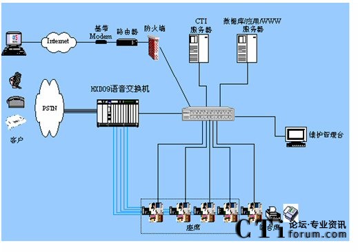 提供中國(guó)一號(hào)、七號(hào)信令、模擬、T1、IP等多種信令接入方式,具有呼入、呼出功能,負(fù)責(zé)向用戶播放服務(wù)用語(yǔ)、語(yǔ)音通知、呼叫引導(dǎo)用語(yǔ)、合成語(yǔ)音等,并具有錄音、監(jiān)聽(tīng)、發(fā)送傳真、接收傳真等功能,處理接入電話與人工坐席的連接、來(lái)話轉(zhuǎn)移、保留、坐席呼出等功能,用戶與人工坐席的通話過(guò)程可實(shí)現(xiàn)全程錄音。在市場(chǎng)眾多品牌的交換機(jī)中,本系統(tǒng)選用的HXD09語(yǔ)音交換機(jī)具有先進(jìn)的技術(shù)特點(diǎn)、極高的性價(jià)比,滿足了在本系統(tǒng)構(gòu)建的需求。其主要優(yōu)點(diǎn)是: