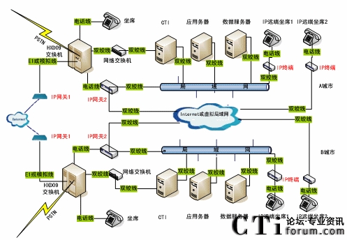 單一的呼叫中心往往是CTI+本地坐席的簡(jiǎn)單服務(wù)模式,而在實(shí)際應(yīng)用中,由于地域分布的限制,單純的本地坐席無(wú)法滿(mǎn)足實(shí)際需要,需要提供遠(yuǎn)端坐席來(lái)實(shí)現(xiàn)地域之間的協(xié)作