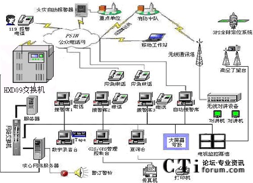 隨著國民經(jīng)濟的不斷發(fā)展,我國城市的現(xiàn)代化進程在不斷加快,因而對消防部隊的反應速度、調(diào)度指揮、現(xiàn)場搶險救災等綜合能力要求越來越高.現(xiàn)代化的消防通信指揮系統(tǒng)是受理火災報警、實施通訊調(diào)度指揮、執(zhí)行滅火救災工作的必不可少的技術裝備,它對于保護國家和人民生命財產(chǎn)的安全、保障經(jīng)濟建設的順利發(fā)展、維護社會的穩(wěn)定有著十分重要的意義.,恒訊達公司的(HXD09)交換機切合實際,綜合應用現(xiàn)代通信技術、計算機網(wǎng)絡技術、結(jié)合地理信息技術、VOIP、虛擬現(xiàn)實技術,開發(fā)了網(wǎng)絡化、智能化、可視化的、高度模塊化、以技術先進、組網(wǎng)靈活、整體性強、實時性高、安全可靠、實用高效為特點的可編程智能語音交換機,HXD09交換機接口易開放性,結(jié)合圖形化的流程生成器和二次開發(fā)接口,為119系統(tǒng)平臺開發(fā)商提供強大的平臺保證。