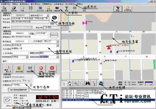 - 電話調(diào)度功能: 接警后,可撥打有關科室、消防中隊的電話進行調(diào)度指揮。并將每次電話形成記錄存放在電腦中。 三方通話功能:接警時可同時接通某科室、消防中隊等聯(lián)動單位,實現(xiàn)報警方、接警方、出警方三方通話功能。