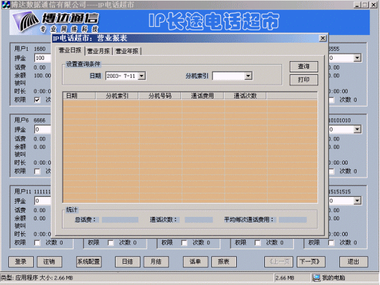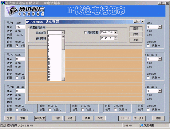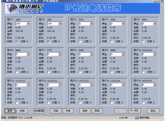 博達(dá)公司在IP電話認(rèn)證的基礎(chǔ)上開發(fā)的IP電話計(jì)費(fèi)計(jì)費(fèi)系統(tǒng),實(shí)現(xiàn)了用戶管理、卡用戶批量生成、費(fèi)率設(shè)置、折扣設(shè)置、話單查詢、帳務(wù)查詢、管理統(tǒng)計(jì)、運(yùn)營(yíng)分析等功能,為電信運(yùn)營(yíng)商的運(yùn)營(yíng)和企業(yè)用戶對(duì)IP電話的內(nèi)部管理和服務(wù)提供了有利條件。