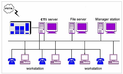 在實際工作中將CTI服務(wù)器、管理工作站、文件服務(wù)器、坐席工作站集中于一臺微機處理。