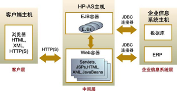 Transactions)和無線應(yīng)用中間件(Total-e-Mobile)等等。因此,下面主要介紹HP-AS。具體來說,HP-AS是基于Java的中間件服務(wù)器,包含了Sun公司創(chuàng)造的J2EE技術(shù)、HP公司的中間件服務(wù)和許多業(yè)界領(lǐng)先的技術(shù)。HP-AS為創(chuàng)建、測(cè)試和運(yùn)行分布式多層應(yīng)用提供了擴(kuò)展性極強(qiáng)的基礎(chǔ)架構(gòu)。像HP-AS這樣的中間件產(chǎn)品,已經(jīng)成為分布式應(yīng)用的首選平臺(tái)。因?yàn)樗鼈兲峁┝酥行缘沫h(huán)境,使得開發(fā)者在開發(fā)應(yīng)用以及與原有的系統(tǒng)集成的時(shí)候,可以具有最大的靈活性。