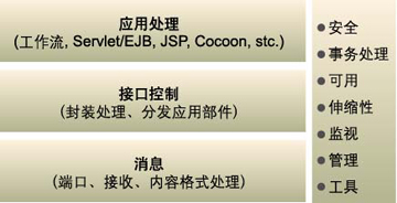 (2)接口控制服務(wù)層。實(shí)現(xiàn)SOAP封裝處理,支持分發(fā)請(qǐng)求,包括支持J2EE部件邏輯調(diào)用以及HP公司Process Manager軟件工作流系統(tǒng)。