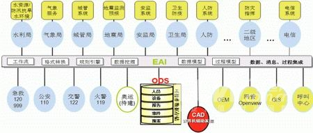 建立在ODS基礎(chǔ)上的ODS+EAI框架為整個(gè)公共安全應(yīng)急指揮系統(tǒng)提供基礎(chǔ)架構(gòu),通過該框架不僅可以交換并緩存數(shù)據(jù)信息,同時(shí)可以交換和記錄調(diào)度命令,通過數(shù)據(jù)采集構(gòu)建信息數(shù)據(jù)基礎(chǔ),記錄并歸檔事件處理過程,維護(hù)和利用預(yù)案處理過程。同時(shí)該框架也為我們建議的本地或遠(yuǎn)程OEM系統(tǒng)、甚至是移動(dòng)的OEM系統(tǒng)提供有力的技術(shù)和數(shù)據(jù)支撐。