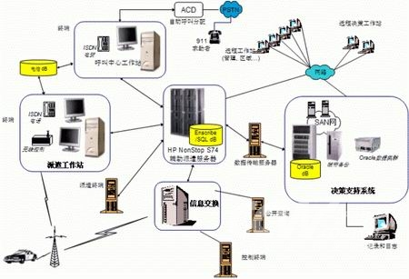 數(shù)據(jù)支持中心:我們可以從兩方面來看這個(gè)問題:首先它會(huì)為應(yīng)急子系統(tǒng)OEM、CAD等各種其它系統(tǒng)提供整個(gè)公共安全指揮的數(shù)據(jù)支撐。另外,它也可以做為市級(jí)政府對(duì)外提供的一個(gè)統(tǒng)一信息發(fā)布平臺(tái),如GIS地理信息系統(tǒng)作為一種非實(shí)時(shí)的信息數(shù)據(jù)資源,不僅可以對(duì)本身的公共安全系統(tǒng)提供數(shù)據(jù)支持,也可以為其它政府單位部門提供統(tǒng)一的GIS信息資源。