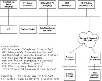 結(jié)合HP公司在全球范圍內(nèi)911應(yīng)急系統(tǒng)和安全領(lǐng)域的建設(shè)經(jīng)驗(yàn)和案例,HP公司針對(duì)國內(nèi)對(duì)公共安全建設(shè)的需求,提供了公共安全系統(tǒng)的建設(shè)架構(gòu)和解決方案