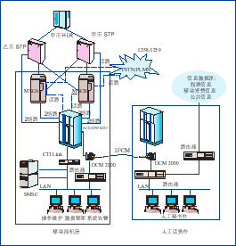 | ACD和G/IW MSC采用華為公司的C&C08_Q智能交換機做為交換與七號信令的接入設備; 短消息調度中心SMSC,處理短消息的提交、存儲、下發(fā)、定時重發(fā)等; 呼叫處理服務器CCS,是人工/自動秘書臺的話務呼叫控制部件; | ![]() |