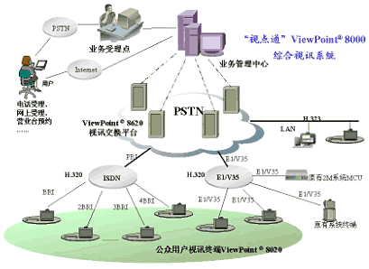 基于電信級視訊業(yè)務(wù)的需求,華為推出新一代的全交換公眾視訊業(yè)務(wù)產(chǎn)品--'視點通'ViewPoint8000綜合視訊系統(tǒng)。'視點通'可以方便地以ISDN撥號接入為主,兼容E1/V.35專線及IP接入的方式,組建綜合視訊業(yè)務(wù)網(wǎng)絡(luò)。 公眾化視訊業(yè)務(wù)的開展不僅可以使ISDN等數(shù)據(jù)交換網(wǎng)絡(luò)又增加了一個極具吸引力的承載業(yè)務(wù),極大地促進(jìn)了ISDN等數(shù)據(jù)業(yè)務(wù)的推廣,實現(xiàn)現(xiàn)有ISDN等數(shù)據(jù)網(wǎng)絡(luò)的增值,更為重要的是綜合視訊網(wǎng)絡(luò)為電信運營商經(jīng)營視訊業(yè)務(wù)提供了理想的平臺,使得視訊業(yè)務(wù)在各行各業(yè)廣泛應(yīng)用成為可能。