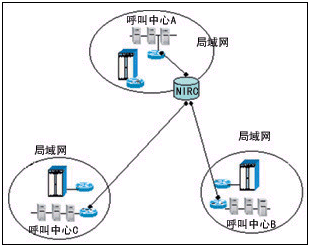 圖1 組網(wǎng)方式一:將NIRC配置在較大的一個呼叫中心里面