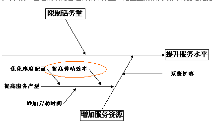 為了解決問題,我們首先進行問題的分析。造成客服中心服務(wù)水平下降的主要原因是服務(wù)需求的增加和服務(wù)資源的不足帶來的矛盾。面對這種性質(zhì)的矛盾,解決辦法要么就是限制需求,要么就是提高資源。由于話務(wù)量增加是業(yè)務(wù)發(fā)展的結(jié)果,屬合理需求,我們不應(yīng)該對其進行壓縮,所以只有走提高資源的路子。提高資源又分為兩個方向,一種是通過增加投資使資源的數(shù)量得到絕對的提高,一種是通過加強管理使資源的利用率得到相對的提高。在資源有限的今天,毫無疑問,我們應(yīng)該選擇加強管理的方向。