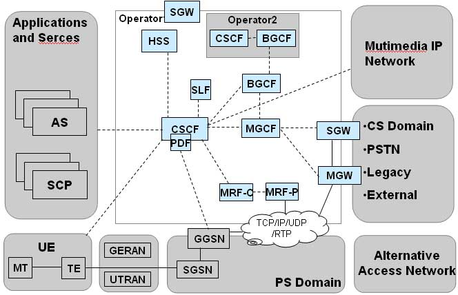 可以通過SGW(信令網關)與CS(電路域)網絡接入,通過MGW(媒體網關)與WLAN、ADSL等接入。