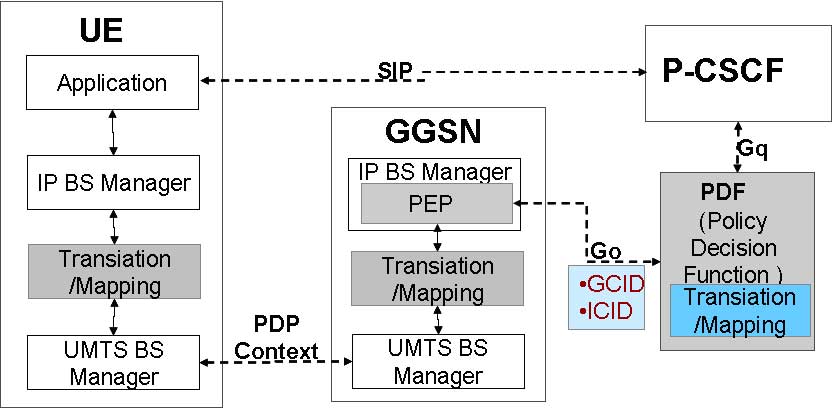 (3)PDF對IP流進行記錄(包括流標識符(GCID)、數(shù)據速率、QoS類別等)并授權。通過SDP參數(shù)映射到所授權的IPQoS參數(shù)而實現(xiàn),并通過GO接口(COPS協(xié)議)傳送到GGSN。