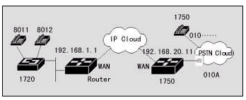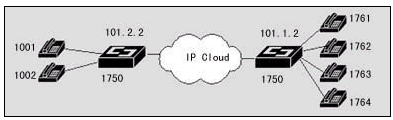 在該案例中,異地之間通過兩臺DCR 1750互連,并提供語音模塊,可直接接電話機,使得異地之間可以通過IP網(wǎng)絡(luò)撥打IP語音電話。