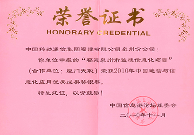 在本屆論壇上,由廈門天聰智能軟件有限公司與泉州移動聯(lián)合研發(fā)成功的全國首創(chuàng)的聲紋識別親情電話系統(tǒng)(福建泉州市監(jiān)獄信息化項(xiàng)目)獲得“2010年中國通信與信息化應(yīng)用優(yōu)秀成果獎(jiǎng)”銀獎(jiǎng)。這一系統(tǒng)的研制成功,對司法系統(tǒng)的信息化建設(shè)與管理具有重大意義。