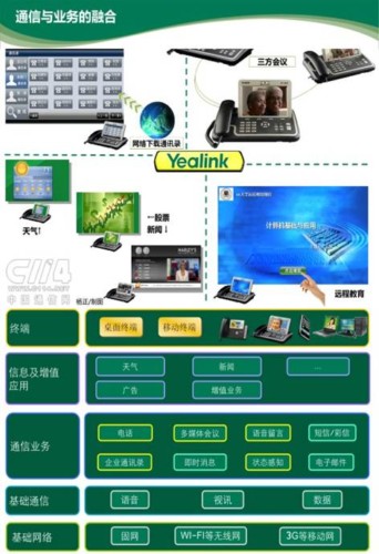 億聯(lián)專注于VoIP領(lǐng)域的發(fā)展,見證了整個終端發(fā)展過程:從由傳統(tǒng)的模擬/數(shù)字電話、IP語音電話、IP視頻話機,到多媒體信息終端階段。每前進(jìn)一步,都擁有上一步的所有功能,并再延伸出更核心的應(yīng)用。