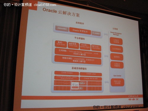 在媒體溝通會(huì)上,喻思成通過(guò)甲骨文圍繞私有云還是公有云,甲骨文關(guān)注IaaS、PaaS還是SaaS,甲骨文為云計(jì)算提供什么樣的產(chǎn)品以及這些產(chǎn)品的價(jià)值體現(xiàn)在哪里這些問(wèn)題做了詳細(xì)介紹。