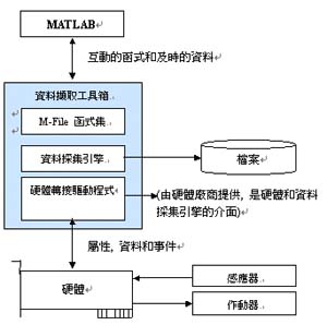 數(shù)據(jù)采集工具箱是一組M-File 函式集和MEX-File 等動態(tài)鏈接鏈接庫所組成的, 專門使用在數(shù)據(jù)采集方面的一組函式庫.