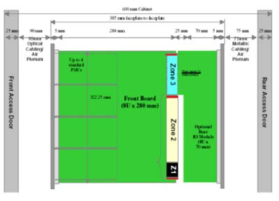 ATCA的架構主要包括以下部分:正面插槽,RTM,PEM,背板,CMMs,散熱系統(tǒng)。(參考圖一與圖二)