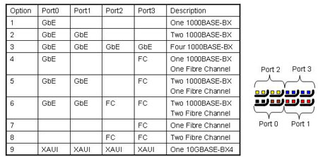 ,此項決定允許PICMG 3.1 組織把光纖信道連接加入到定義以太網(wǎng)連接的章節(jié)中。PICMG 3.1規(guī)范是一個很好的范例描述一個信道中的端口如何被使用來支持不同的傳輸協(xié)議。下表描述了一個信道中的4個端口在PICMG3.1定義的諸多協(xié)議中如何展現(xiàn)支持不同的傳輸協(xié)議配置。