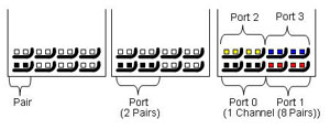接口的最小連接單元。端口的兩對差分信號被映像成一收一發(fā)的傳輸模式。下圖描繪了一個差分對、一個埠、以及一個通路的針腳分布: