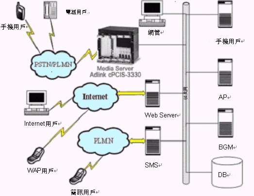 Server)。它采用CompactPCI架構,完全勝任通訊領域?qū)υO備的嚴格要求。BGM的核心硬件采用NMS高密度和高DSP資源CG6500C系列板卡,把PSTN接口、各種電信協(xié)議、綜合的IVR功能、全雙工回音消除、語音編碼、傳真處理、會議應用、高速以太網(wǎng)口以及包協(xié)議等多種功能集中在一個單槽模塊上。