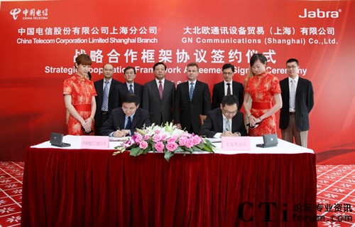 CTI論壇(ctiforum)6月23日消息(記者 楊佳林):上海—全球領(lǐng)先的創(chuàng)新耳麥解決方案提供商大北歐公司(GN Netcom)與中國(guó)電信上海公司(以下簡(jiǎn)稱上海電信)今日隆重舉辦了 “戰(zhàn)略合作框架協(xié)議簽約儀式”。上海電信資深經(jīng)理花銳強(qiáng)、大北歐公司亞太區(qū)總裁Mark Leigh,及雙方公司高層領(lǐng)導(dǎo)共同出席了此次慶典。Mark Leigh先生還代表了大北歐公司將Edouard Suenson先生——“將電報(bào)引入中國(guó)的丹麥人”的雕像捐贈(zèng)給上海電信博物館,見證了中國(guó)與丹麥源于19世紀(jì)末在通信方面的成功合作。