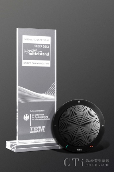 著名的信息技術(shù)創(chuàng)新獎(jiǎng)每年都會在全球最大的數(shù)字信息技術(shù)和電信解決方案博覽會CeBIT上評出。評審團(tuán)在40個(gè)類別的2500多個(gè)競品中評定Jabra SPEAK 410為統(tǒng)一通信類的獲獎(jiǎng)產(chǎn)品。該獎(jiǎng)項(xiàng)由IBM贊助,并由德國聯(lián)邦政府的信息技術(shù)代表Cornelia Rogall-Grothe夫人頒給捷波朗。