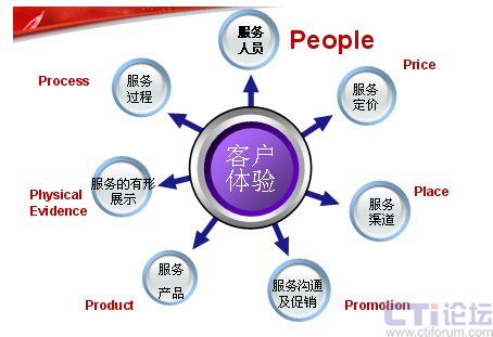 下面這張圖是服務(wù)營(yíng)銷的7P模型,在這里我認(rèn)為最應(yīng)該關(guān)注的是People——人。這里,我想引用世界經(jīng)理人刊登的一篇文章“影響中國(guó)的十大管理理念”上的一段文字:“邁向服務(wù)型經(jīng)濟(jì)實(shí)際上就是邁向人才經(jīng)濟(jì)。在制造業(yè)中,價(jià)值是由機(jī)器創(chuàng)造的。在服務(wù)業(yè)中,價(jià)值則是人創(chuàng)造的!边@也是在服務(wù)業(yè)中,要將“人”進(jìn)行體現(xiàn)。也許你不在乎為你制造產(chǎn)品的工人長(zhǎng)的美或丑,但為客戶服務(wù)的人員如果長(zhǎng)的很丑,對(duì)服務(wù)就會(huì)有一定的影響。大家只看產(chǎn)品結(jié)果,不關(guān)注過程,但是服務(wù)卻是與過程緊密的結(jié)合。