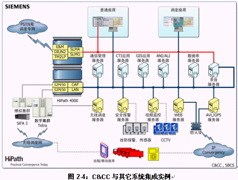 4300通信平臺擴展至單套雙機熱備份的HiPath 4500通信平臺。對于經(jīng)費有限且報警話務(wù)量相對較少的指揮控制中心,HiPath 3000系列小型程控交換機將是不錯的選擇(但需要信令支持)。