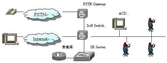 2. 由ACD響應(yīng),并將電話接入IVR(交互語(yǔ)音應(yīng)答系統(tǒng)),詢(xún)問(wèn)客戶(hù)需要幫助的類(lèi)型,并將客戶(hù)的語(yǔ)音應(yīng)答傳送到SR Server;