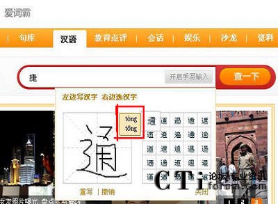 此外,最讓廣大用戶擁躉的亮點(diǎn)是捷通華聲的手寫識(shí)別技術(shù)識(shí)別出來的字是帶拼音帶聲調(diào)的,且多音字會(huì)列出多個(gè)拼音。用戶如果不認(rèn)識(shí)字,可以在輸入框中寫出來,把鼠標(biāo)放在右邊識(shí)別出來的文字上,這個(gè)字的拼音和聲調(diào)就會(huì)顯示出來。比如,在輸入框中輸入“通”字后,把鼠標(biāo)放在右邊識(shí)別出來的“通”字上面,便會(huì)出現(xiàn)“通”字的拼音和聲調(diào)。這個(gè)功能可以媲美漢語大詞典,讓用戶可以即寫即認(rèn),在快速搜索資料的同時(shí),也學(xué)習(xí)了更多的漢字。